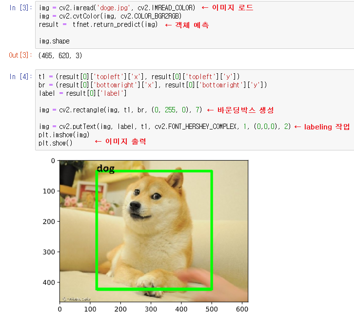 - for문으로 각 객체에 바운딩 박스와 labeling 작업을 한다.