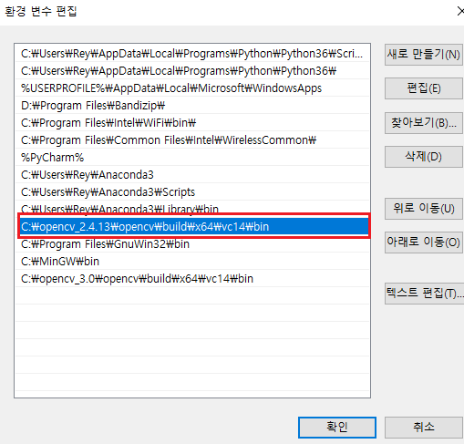 - Visual Studio 2015 v14.0과 호환되는 OpenCV 2.4.13 버전을 C:\에 설치하였다.