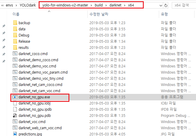 "darknet_no_gpu.exe" 파일이 생성될 것이다.