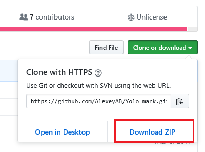 - YOLO Mark GitHub에서 YOLO Mark를 다운받아 압축을 풀어준다.