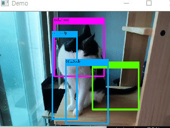 | darknet detector demo data/obj.data yolo-obj.cfg yolo1000.weights data/cat2.mp4 |