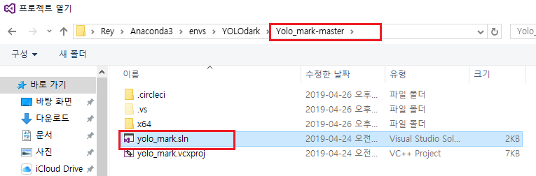 - Visual Studio 2015를 이용하여 Yolo_mark.sln 솔루션 파일을 연다.