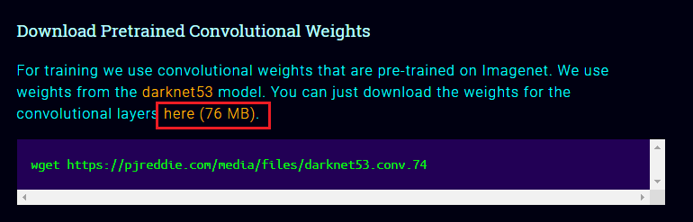 * 다이렉트 링크 : https://pjreddie.com/media/files/darknet53.conv.74