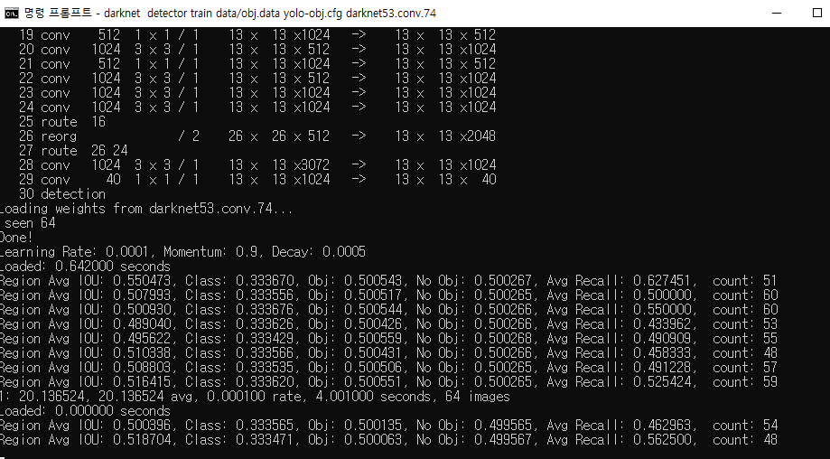 - yolo-obj.cfg와 darknet53.conv.74 는 yolo-for-windows-v2-master\build\darknet\x64 폴더에 넣는다.