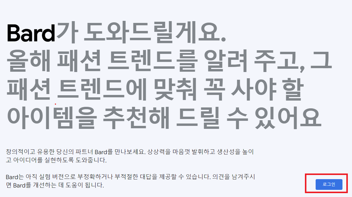 공식 웹사이트 : https://bard.google.com/?hl=ko