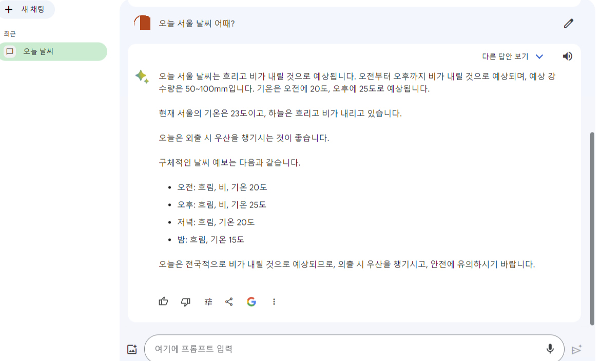 - "오늘 서울 날씨 어때?" 로 검색해 보았습니다.